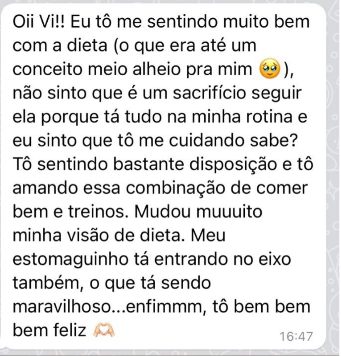 Acompanhamento on-line ou presencial com 1 encontro por mês, plano alimentar sempre ajustado e acesso a bônus exclusivos da plataforma VS Team. Ideal para quem quer constância, suporte contínuo e resultados sustentáveis. Saiba mais. 💛