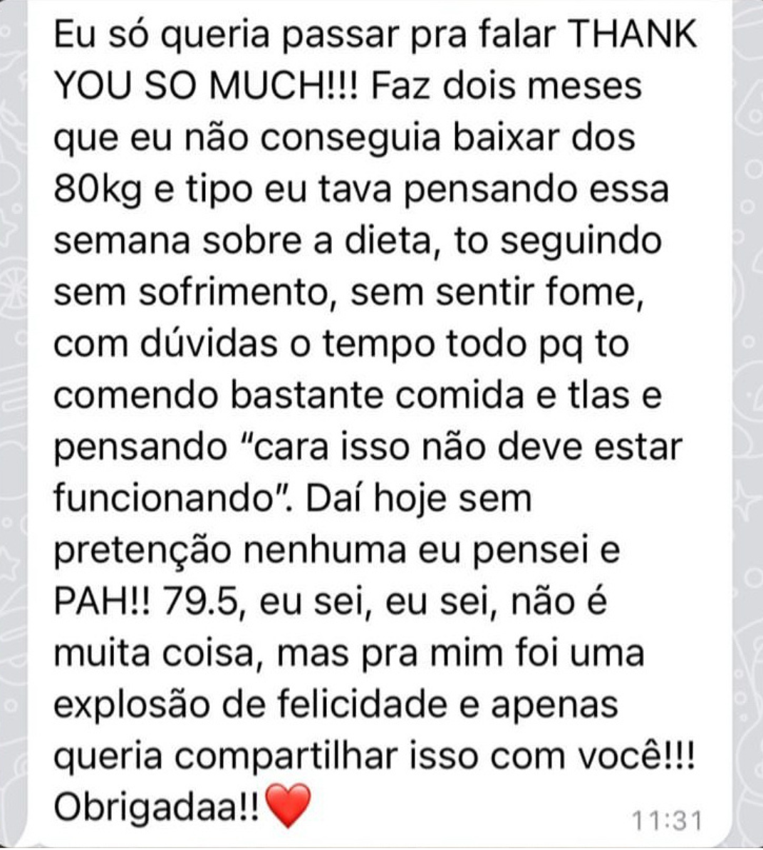 Cardápio personalizado feito a partir de formulário, entregue em até 5 dias, com substituições simples, metas, lista de compras e 7 dias de suporte via WhatsApp. Prático, individual e sem consulta. Saiba mais. 💛